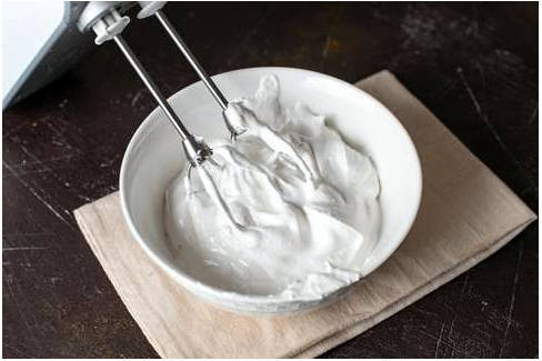 Шаг 6. В эту же массу добавляем яичные белки и взбиваем все до образования пышной и устойчивой массы.