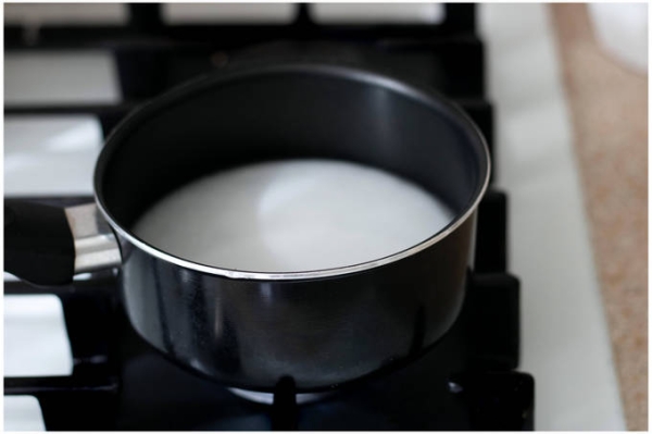 Шаг 5. Ставим заготовку на медленный огонь, доводим до кипения и готовим до полного растворения всех продуктов. В процессе готовки аккуратно помешиваем.
