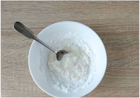 Шаг 2. Соединяем половину яичного белка с сахарной пудрой и лимонным соком.