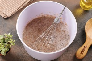 Перемешайте до блинного теста. Если у вас достаточно густое тесто, то влейте ещё немного молока, а если наоборот слишком жидкое — чуть больше льняной муки.