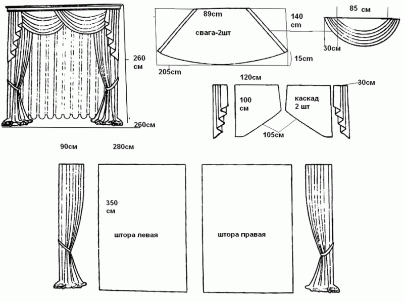 Для пошива штор в британском стиле будущая штора будет теплой и воздушной. Она станет неповторимым украшением любого интерьера комнаты. Ее пошив очень прост, понадобится лишь атлас, настоящий муслин и атласная лента. Как и в предыдущем варианте, обязательно измеряется проем окна, от которого будет зависеть ширина шторы.