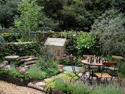 Как правило, небольшой сад используется в основном для отдыха. Поэтому и при планировании его дизайна необходимо будет обустроить уголок, в котором поставить удобную мебель (садовые столы и стулья), возможно небольшой мангал, посадить дополнительные деревья.