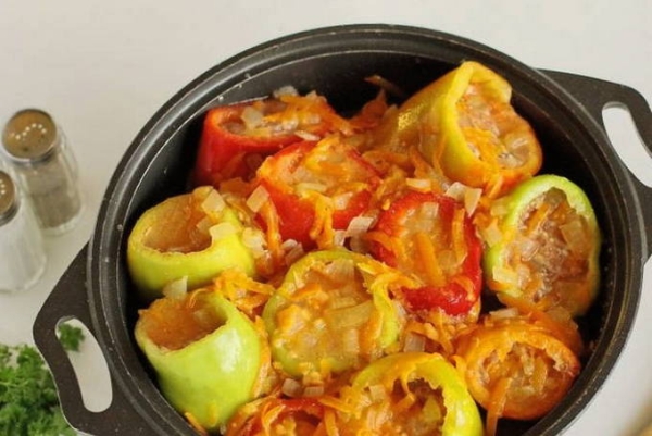Классический фаршированный перец с фаршем и рисом в кастрюле