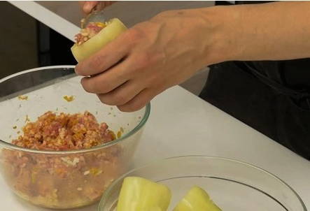 Шаг 4. Фарш с добавками вымешиваем и наполняем им сладкий перец.