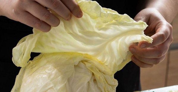 Для того, чтобы правильно подготовить капусту, нужно для начала вырезать кочерыжку. Делайте это так, чтобы листья при этом не распадались. Затем выложите капусту в глубокую кастрюлю с водой и доведите до кипения. Отварите капусту, периодически снимая размягченные, но плотные листья. В среднем на это уходит от 3 до 5 минут.