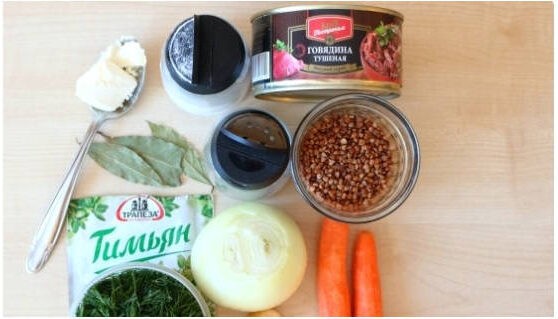 Гречка с тушенкой, луком и морковью