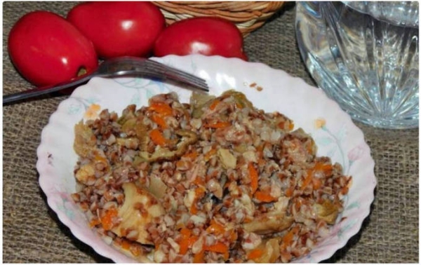 Гречневая каша с тушенкой и овощами