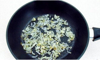 Шаг 2. Мелко нарезанный лук обжариваем 6-8 минут на растительном масле.