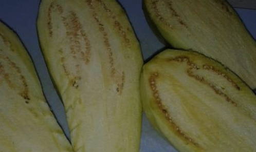 Шаг 9. Остужаем баклажаны. Снимаем кожуры и отделяем мякоть.