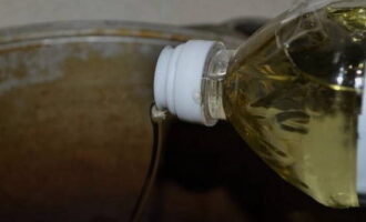 Шаг 10. Выливаем сюда растительное масло. Перемешиваем и доводим массу до кипения, после томим 15 минут.