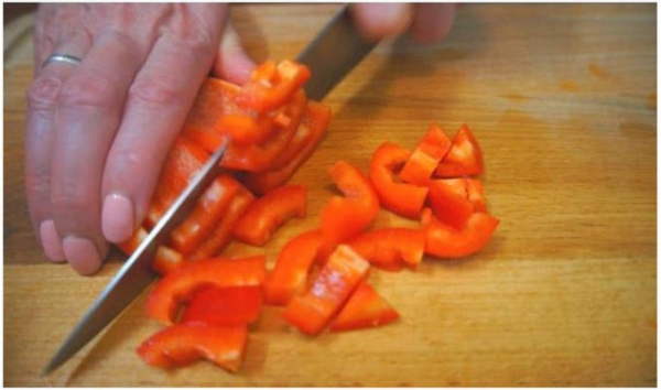 Шаг 7. Болгарский перец нарежьте полукольцами.