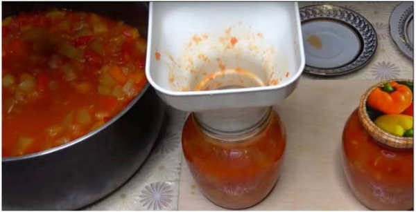 Шаг 9. Горячий салат разложить по банкам и герметично закупорить крышками.