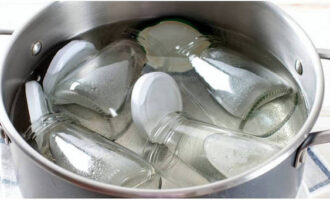 Шаг 5. Горячую заготовку разложите по стерильным банкам, герметично закупорьте и поставьте на крышки.