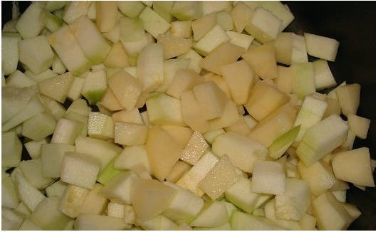 Как вкусно приготовить кабачки в мультиварке? Овощи промываем и очищаем, кабачок нарезаем кубиками среднего размера.