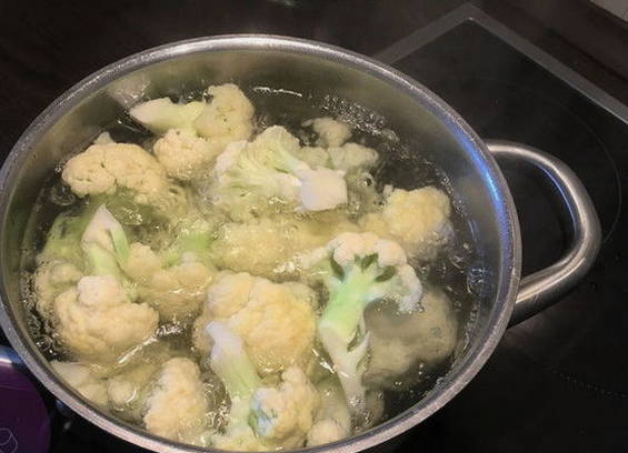 Шаг 1. Если у вас свежая цветная капуста, то ее необходимо немного проварить. Помойте кочан, разберите на отдельные соцветия. В кастрюле закипятите воду, немного подсолите ее и выложите соцветия капусты. Варите овощи примерно 3 минуты. Затем вылейте содержимое кастрюли на дуршлаг, оставьте капусту в нем, чтобы стекла вода.