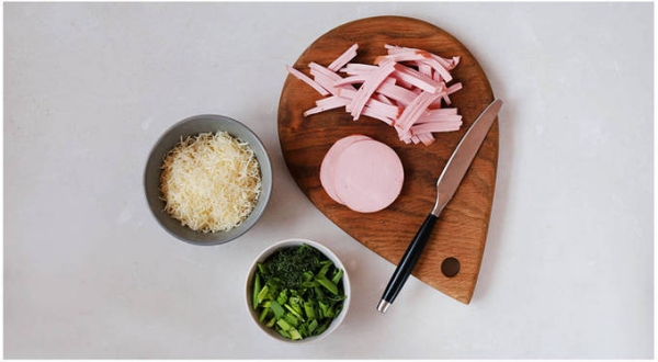 Шаг 1. Колбасу можно брать любую по вашему вкусу, нарежьте ее соломкой. Кусочек сыра натрите на терке с мелкими отверстиями. Зелень лука и укропа обмойте проточной водой и порубите ножом.