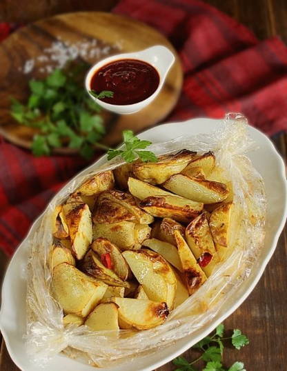 Картошка по-деревенски в духовке готова! Дополняем любимым соусом. Приятного аппетита!