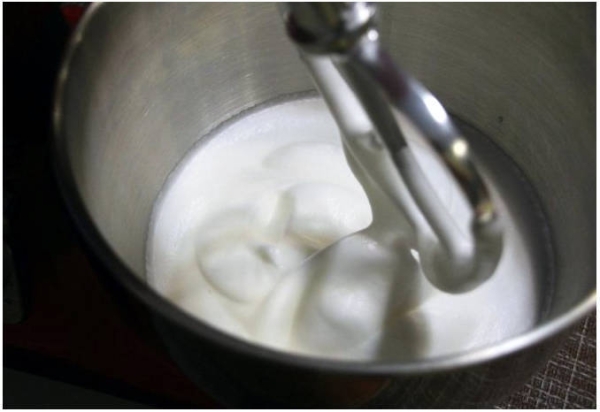 Шаг 3. Взбиваем содержимое до образования пышной белой пены.