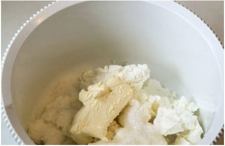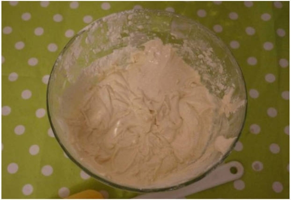 Шаг 4. Для крема взбиваем творожный сыр с сахарной пудрой.