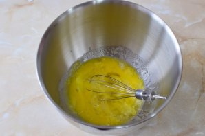 В яичную массу вмешайте сметану и растительное масло. Сметану можно взять любой жирности.
