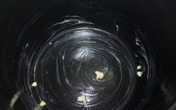 - Вливаем сюда подсолнечное масло или оливковое, продолжаем взбивать.