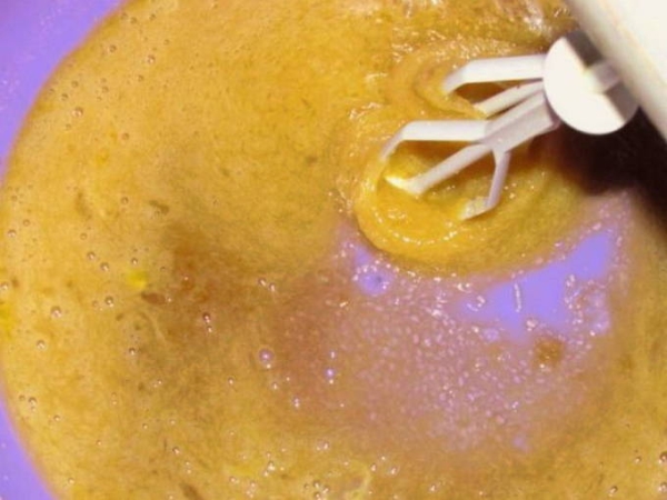 - Далее вливаем подсолнечное масло и продолжаем взбивать массу до однородности.