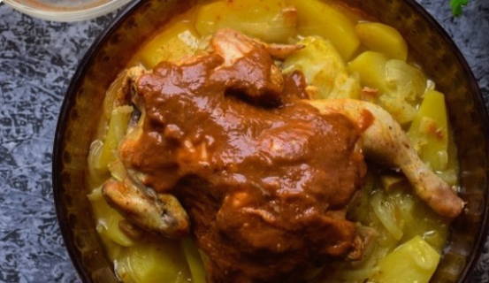 Курица с картошкой на противне в духовке