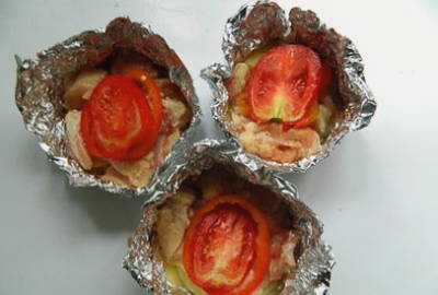 Шаг 1. Формируем из фольги порционные формочки с бортиками, промазываем растительным маслом.