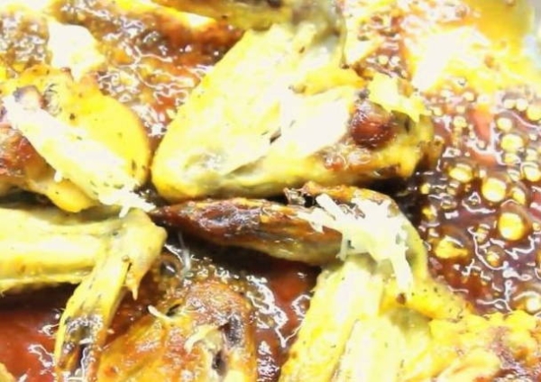 Куриные крылышки с горчицей, медом и соевым соусом в духовке