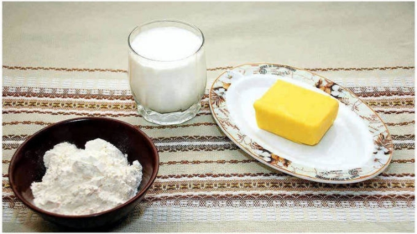 Шаг 3. Протерев или обмыв чашу, распускаем сливочное масло. Всыпаем муку и жарим помешивая. Понемногу выливаем молоко и размешиваем до однородности. Доливаем все молоко, постоянно помешивая.