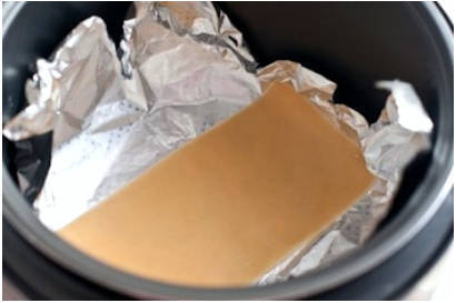 Шаг 8. Свободные края фольги заворачиваем так, чтобы они не касались сыра, закрываем прибор. Переключаем прибор в режим “Выпечка”, активируем таймер на 45 минут.