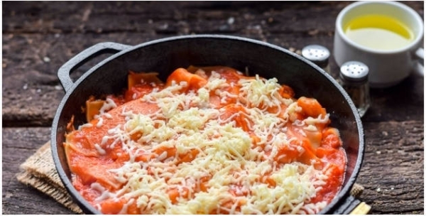 Лазанья с фаршем на сковороде – безупречный способ приготовления для тех, у кого нет духовки. Блюдо готовится довольно просто. Немного терпения и на вашем столе шикарное угощение. Овощи хорошо сочетаются с любым фаршем. Лазанья выходит сочной и восхитительно аппетитной.