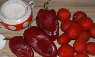 Заготовить лечо из перца, помидоров и чеснока на зиму очень легко. Промываем овощи для приготовления лечо. Помидоры ошпариваем и очищаем от кожуры.