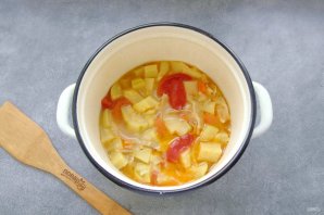 Накройте кастрюлю крышкой и варите овощи до мягкости.