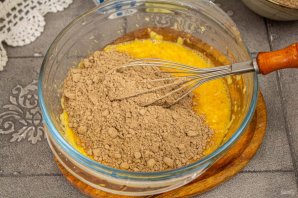 Всыпьте миндальную муку, перемешайте тесто.
