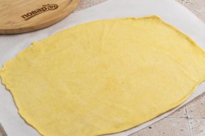 Раскатайте получившееся тесто в пласт толщиной около 3-4 мм.