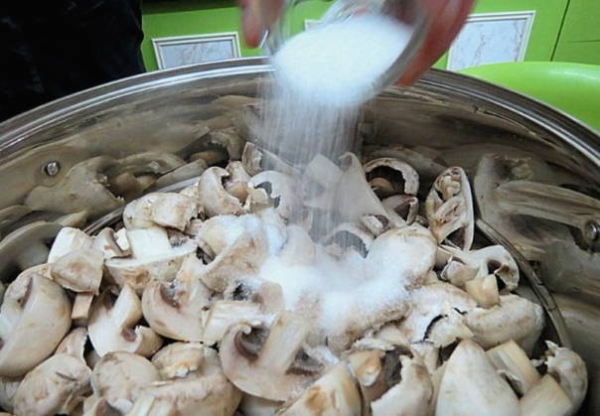 Шаг 6. Добавляем к грибам указанное количество соли.