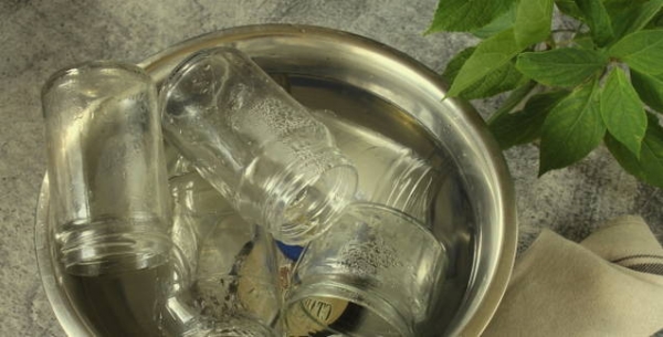 Шаг 2. Подготавливаем стеклянные емкости, погрузив их в содовый раствор. Тщательно смываем, а затем стерилизуем.