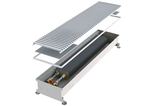 - конвективные, передающие конвекцией от 75 % до 95 % общего теплового потока (конвекторы и ребристые трубы). Напольные конвекторы и радиаторы вы можете заказать на сайте.