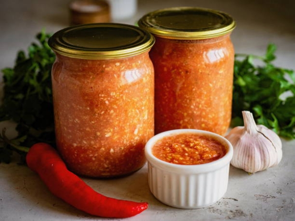 Огонек из помидоров с хреном на зиму – соус для ценителей пикантных блюд. Острая закуска полностью оправдывает свое название. Если у вас проблемы с желудком, пробовать соус не рекомендуется. Если же все в порядке с пищеварением, непременно воплотите закрутку в жизнь.