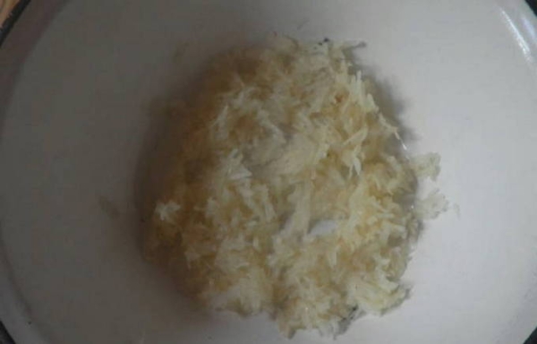 Шаг 5. Сняв с чеснока верхний слой, натираем его на мелкой терке.