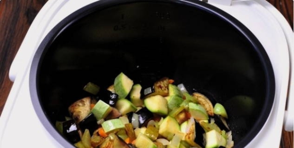 Овощное рагу с кабачками, баклажанами, помидорами и перцем в мультиварке