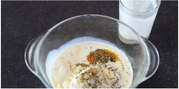 Шаг 3. Смешиваем сливки с желтками, растирая венчиком. Солим и перчим. Сдабриваем натертым на терке сыром и измельченным базиликом (или используем сухую специю). Хорошо вымешиваем ручным приспособлением. Сливки берем любой жирности, у меня 20%, подойдут и 10%.