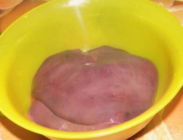 Шаг 2. Говяжью печень выкладываем в глубокую миску.