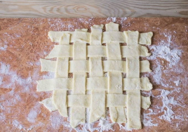 Шаг 16. Вторую часть теста также раскатываем и закрываем полученным постом начинку.