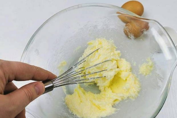 Шаг 5. Вымешиваем масло с сахаром венчиком до однородности.