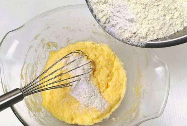 Шаг 5. Добавляем муку и разрыхлитель. Замешиваем мягкое однородное тесто.