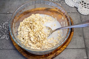 Овсяные хлопья залейте горячим молоком и оставьте на 10-15 минут.