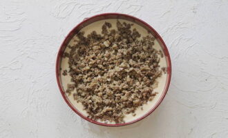 Шаг 2. Приправляем и размешиваем массу, слегка отбивая.