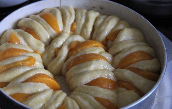 Шаг 12. Дрожжевой пирог с персиками в духовке готов. Подавайте к столу!